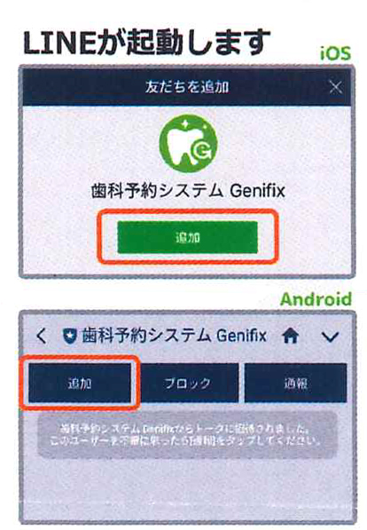LINEの友だちを追加で、「追加」ボタンを押してください。