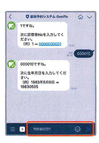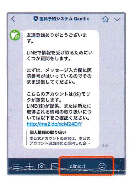 診察券の番号を入力して送信します。